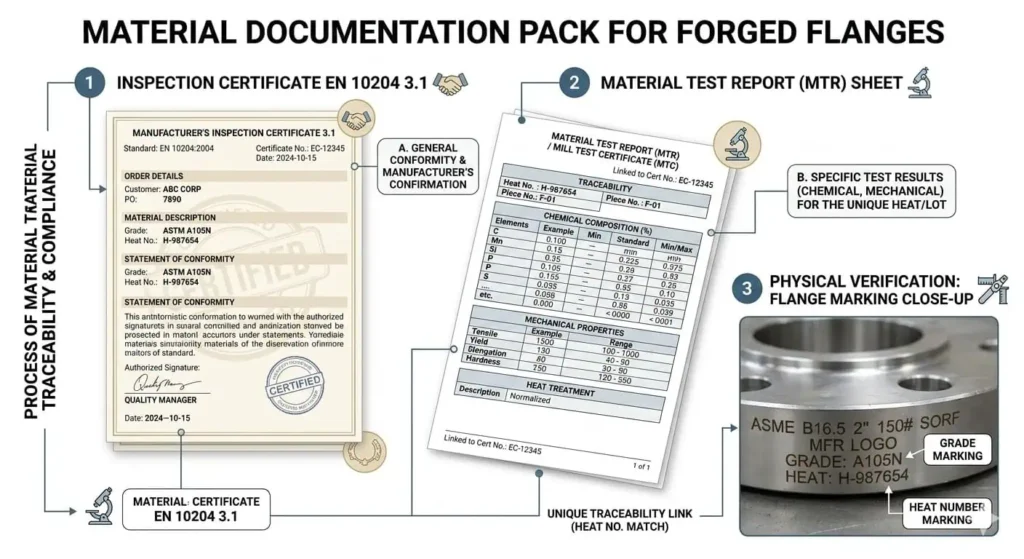 | Confirm grade on PO + flange markings | Prevents wrong-grade substitution and mixed heats |