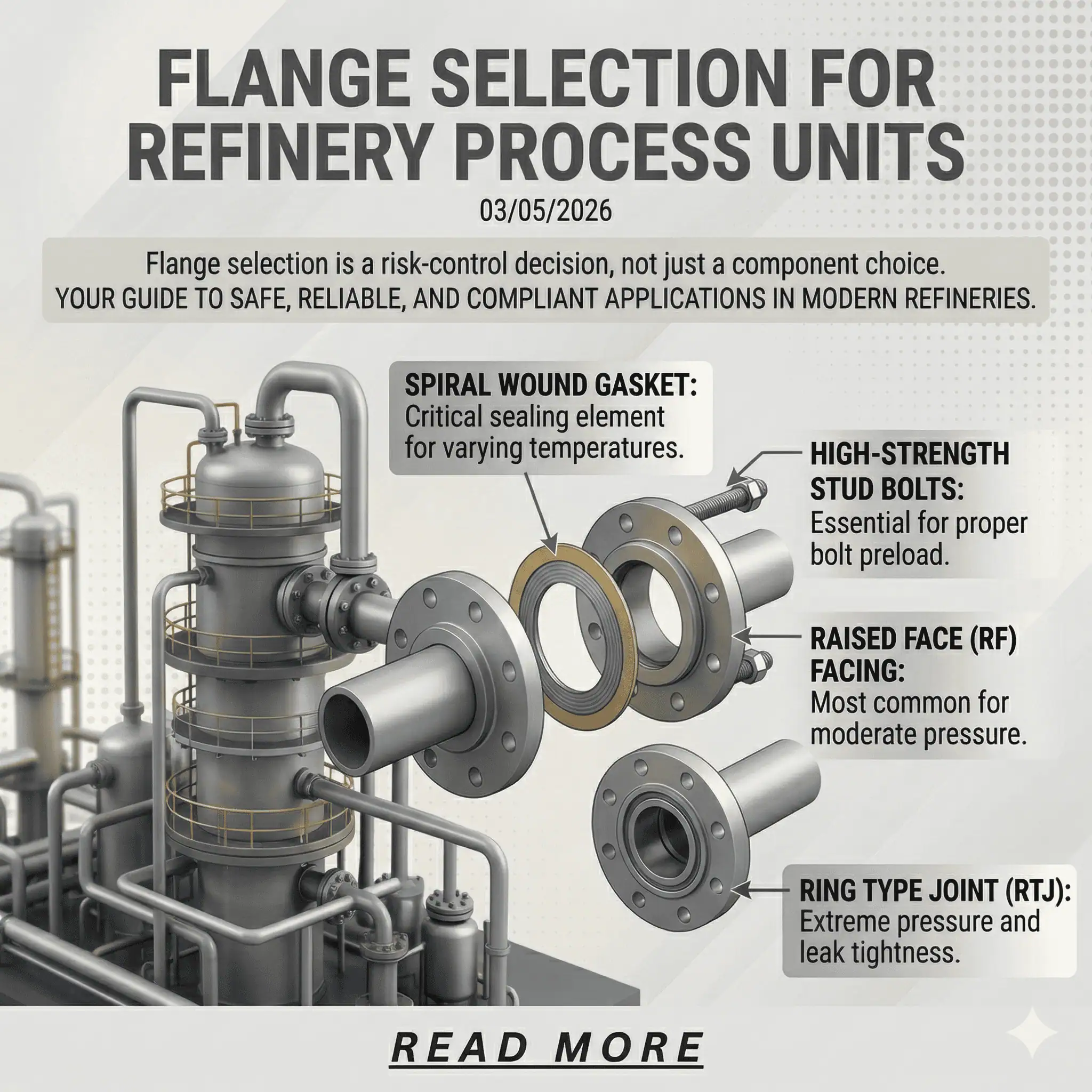 Tip: Match flange type, facing, gasket technology, and bolting procedure to the actual refinery duty. Joint reliability comes from the full assembly design and field execution—not one component in isolation.