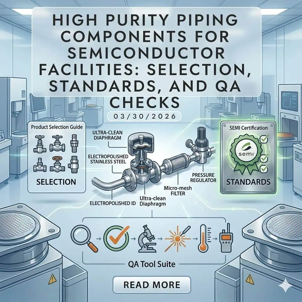 Les composants de tuyauterie haute pureté pour les installations de semi-conducteurs doivent être sélectionnés en fonction du service, du mécanisme de contamination, de la méthode d'assemblage, des attentes en matière d'assurance qualité et de la maintenabilité sur site. C'est la voie pratique pour moins de fuites, moins d'incidents de contamination, moins de surprises d'arrêt et une meilleure stabilité à long terme du système. Si vous voulez que le lecteur de l'article prenne de meilleures décisions d'ingénierie, ne vous arrêtez pas aux “ matériaux et raccords ”. Incluez le chemin de décision complet : définition du service, normes, logique de connexion, contrôles de réception, qualité d'installation et prévention des défaillances.