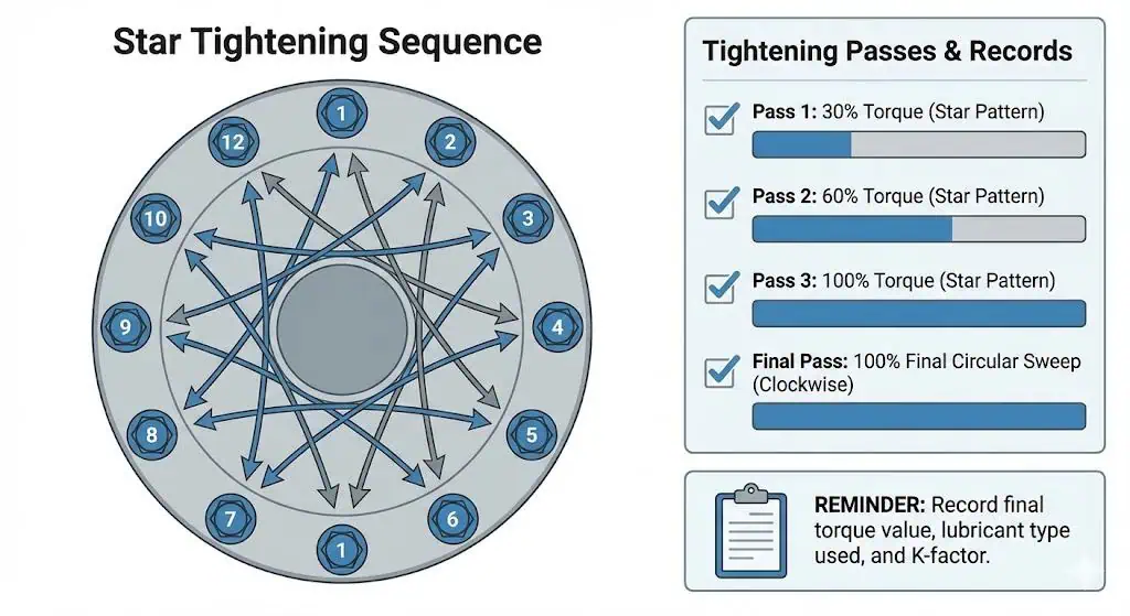 | Négliger la séquence de serrage des boulons | Une compression inégale du joint due à une mauvaise séquence/passes provoque des fuites précoces même si les pièces sont “ dans les tolérances dimensionnelles ”. Suivez une méthode contrôlée en plusieurs passes. |