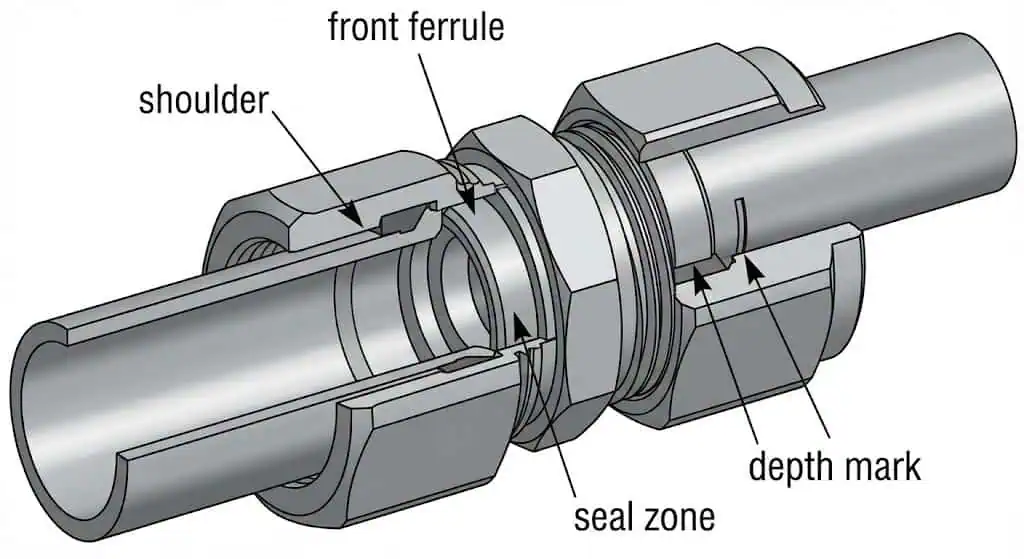 Dica: Se você frequentemente encontrar tubos “quase assentados”, adicione um controle de profundidade de inserção: marque o diâmetro externo do tubo na parte traseira da porca antes de apertar, ou use um método de ferramenta de marcação de profundidade do guia do fabricante. Esta é uma forma rápida de detectar inserção incompleta em painéis lotados.