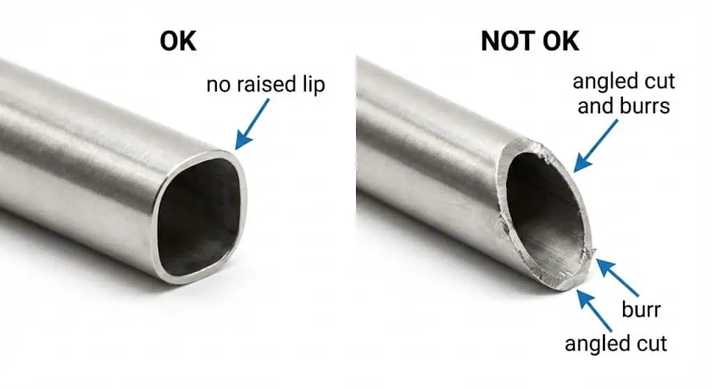Dica: Use tanto seus olhos quanto suas mãos para verificar por amassados, seções achatadas, defeitos no cordão de solda (se for tubo soldado) e quaisquer arranhões no OD perto da área de vedação. Se o OD estiver danificado, corte até o tubo limpo em vez de esperar que os anéis de vedação “vedem de qualquer maneira”.” Uma lista de verificação da qualidade do tubo é um controle pré-trabalho útil para reduzir vazamentos repetidos.