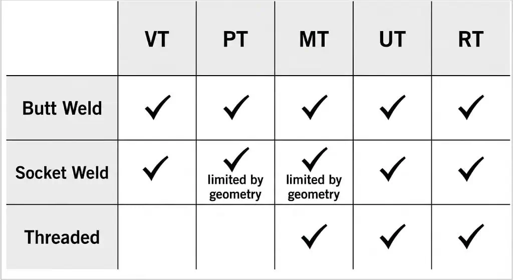 Стыковые сварные швы часто требуют более строгого контроля, поскольку они часто используются в более ответственных системах — и потому что ремонт сложнее после ввода трубопровода в эксплуатацию.