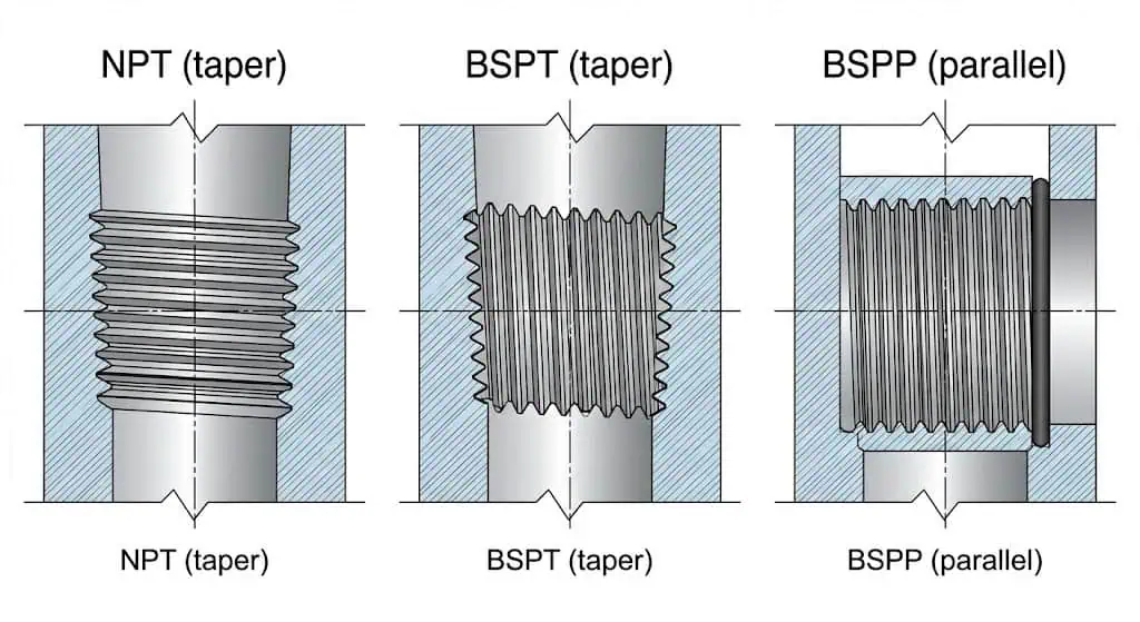 - Невыполнение проверки стандарта резьбы (NPT/BSP/параллельная vs коническая) вызывает хронические утечки, которые герметик не может устранить навсегда.