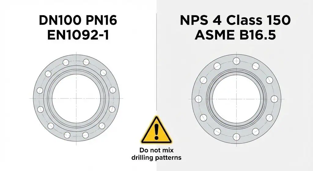 Пример на объекте: DN100 PN16 был ошибочно принят за NPS 4 Class 150 при комплектации, поскольку их обычно считают “достаточно близкими”. Фланец не совпадал по окружности расположения болтов; последовала доработка, а уплотнительная поверхность была повреждена при повторных пробных сборках. Маркировка предотвратила бы эту попытку.