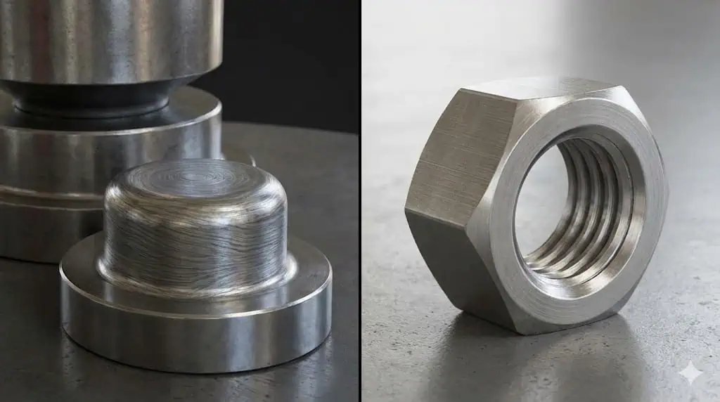 Спецификация за минуту: Холодная высадка лучше всего подходит для стандартных гаек, поскольку она сохраняет направление волокон, увеличивает наклёп и обеспечивает стабильную геометрию при серийном производстве. ЧПУ-обработка предназначена для нестандартной геометрии, жёстких допусков или твёрдых/специальных сплавов. Для критических соединений метод изготовления влияет на плоскостность опорной поверхности, стабильность фаски и поведение трения — а значит, влияет на преднатяг.